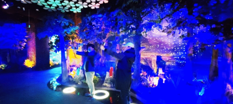 Designed as a trendy check-in spot for young visitors and a learning space for teenagers, it unites simulated landscaping, interactive installations, artistic lighting features, and captivating digital content.